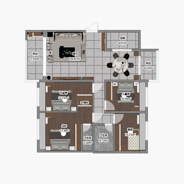 效果圖:全屋概覽效果圖、客廳效果圖、餐廳效果圖、廚房效果圖、兒童房效果圖、主臥效果圖